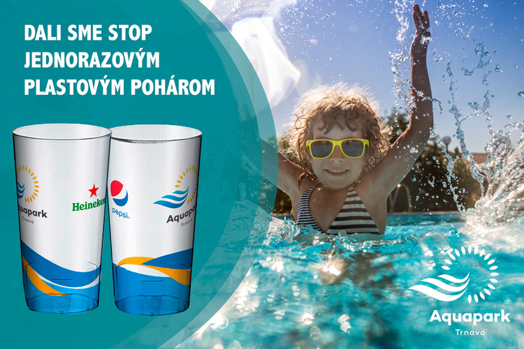 Najväčšie percento odpadu v Aquaparku Trnava tvoria jednorazové plasty, najviac jednorazové poháre. Spolu s našimi dodávateľmi sme pochopili, že je načase im dať zbohom. Záleží nám na tom, čo po sebe zanecháme, a preto pri Vašej najbližšej návšteve dostanete Váš nápoj vo vratnom pohári, ktorý si môžete odniesť ako suvenír domov alebo ho vrátiť. Tento pohár bude po hygienickom umytí použitý znova.
